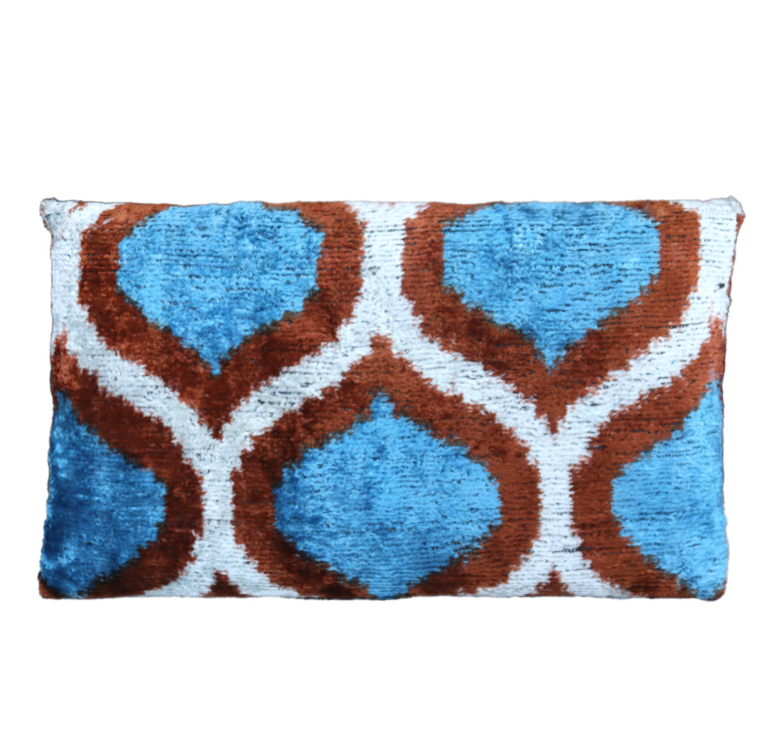 - Clutch de terciopelo de seda ikat hecho a mano.