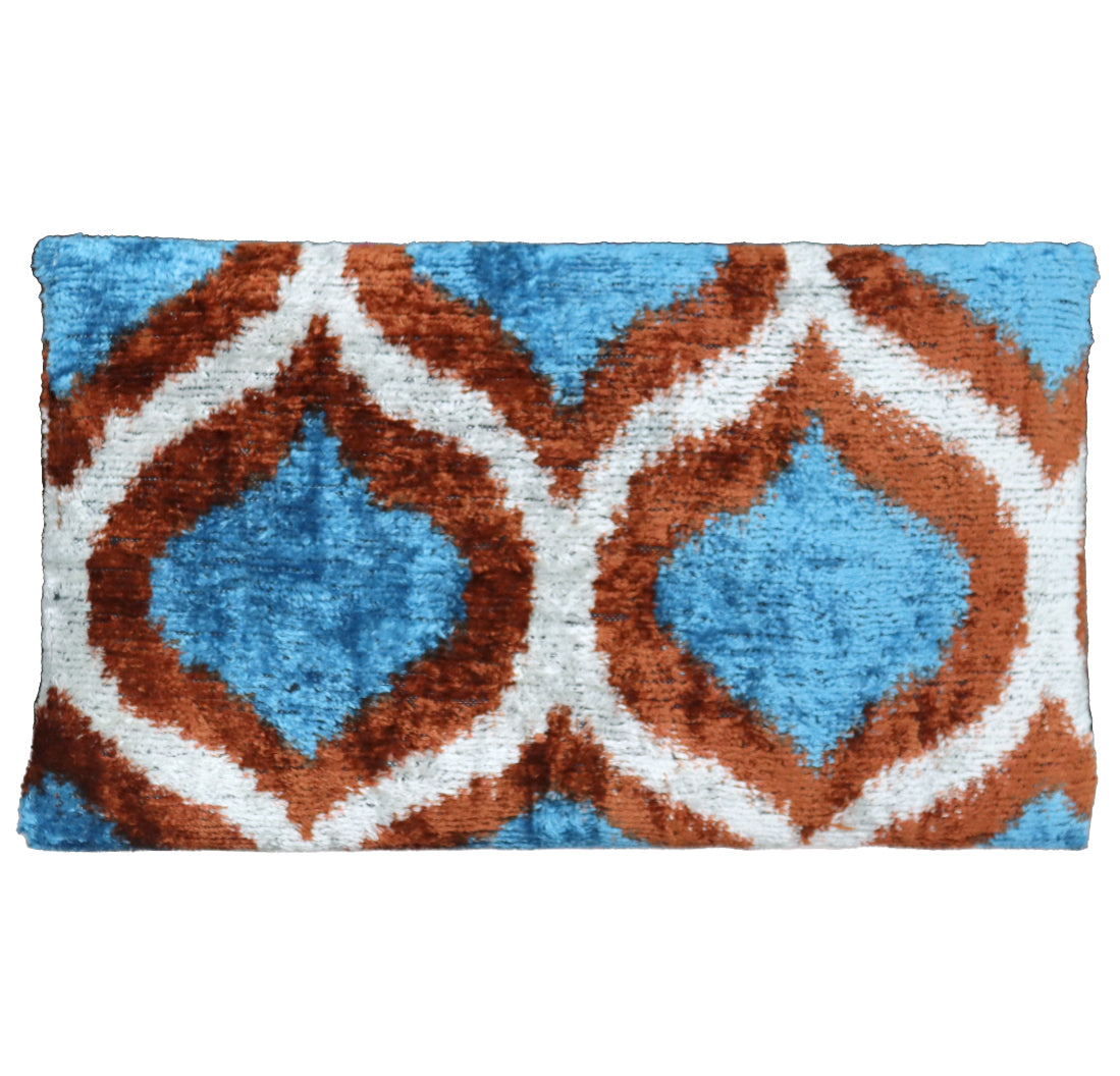 - Clutch de terciopelo de seda ikat hecho a mano.