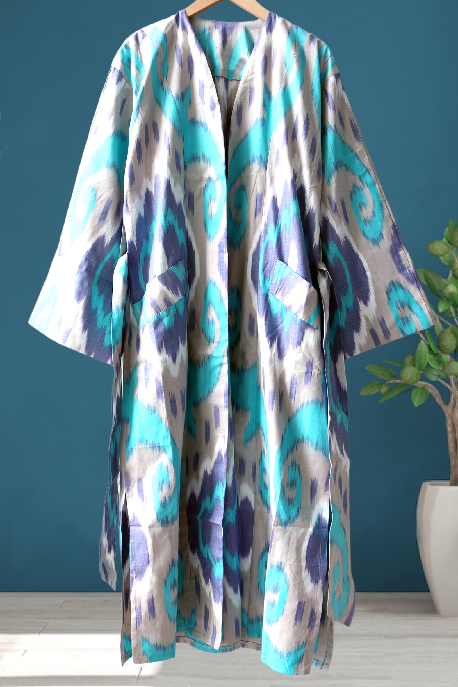 Caftán Algodón Ikat Turkuaz 014