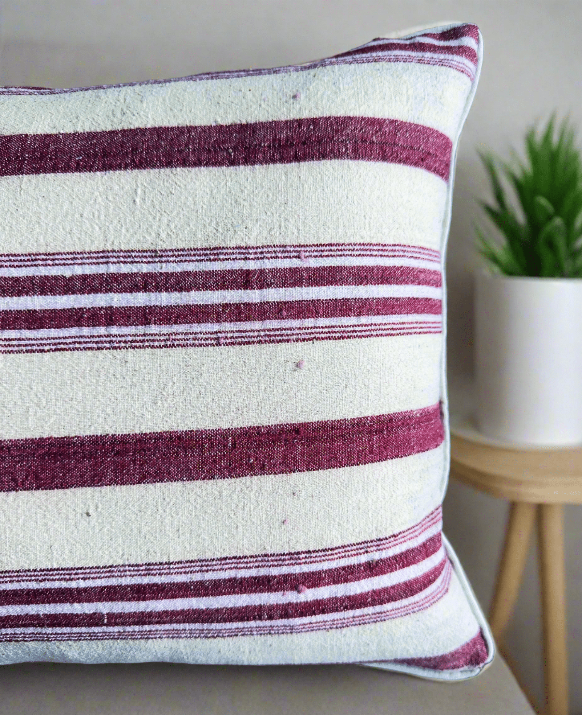 - Funda de cojín de lino con rayas antiguas e ikat de seda 40x60 cm