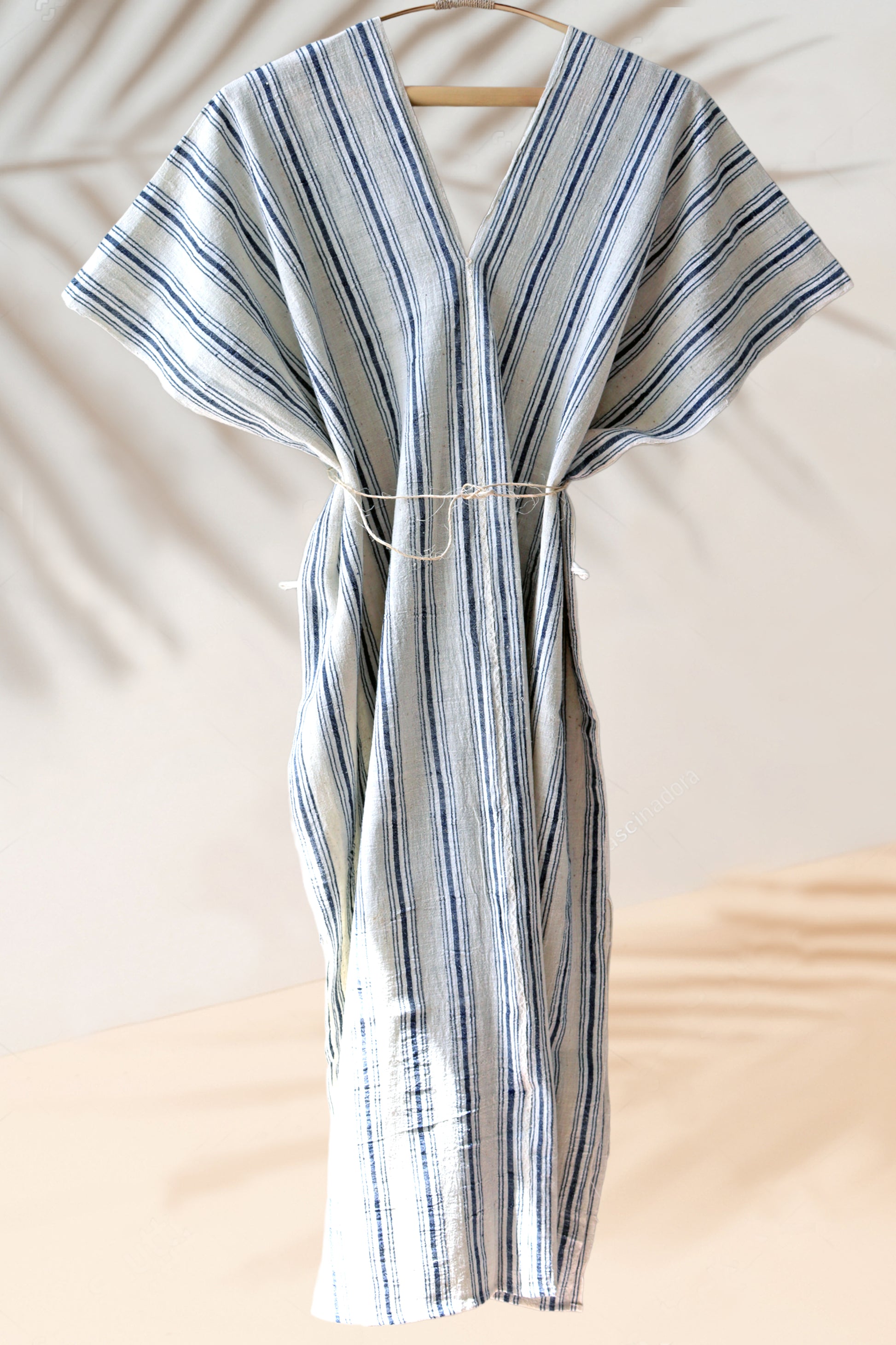- Handwoven organic cotton caftan dress.