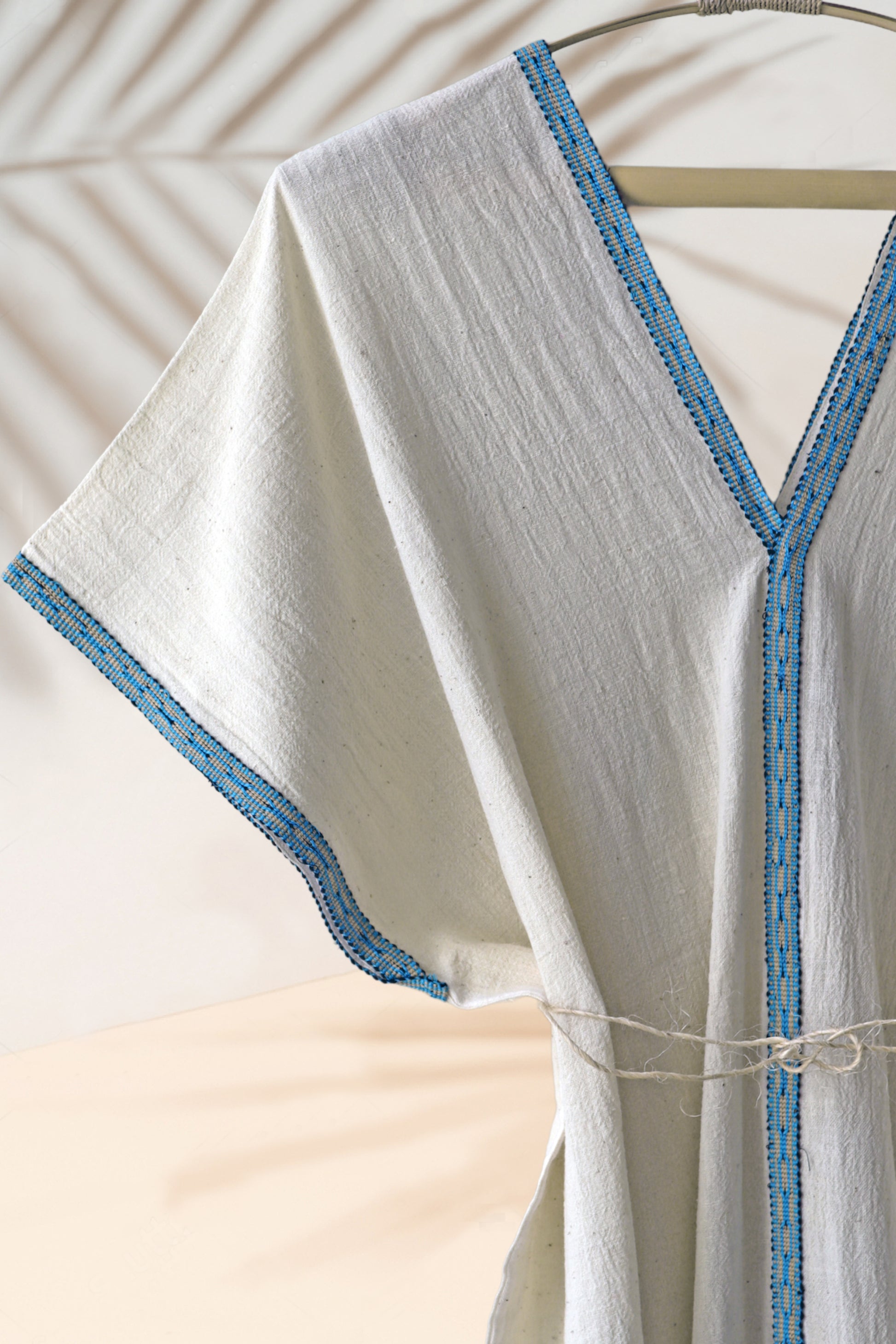 - Handwoven organic cotton caftan dress.
