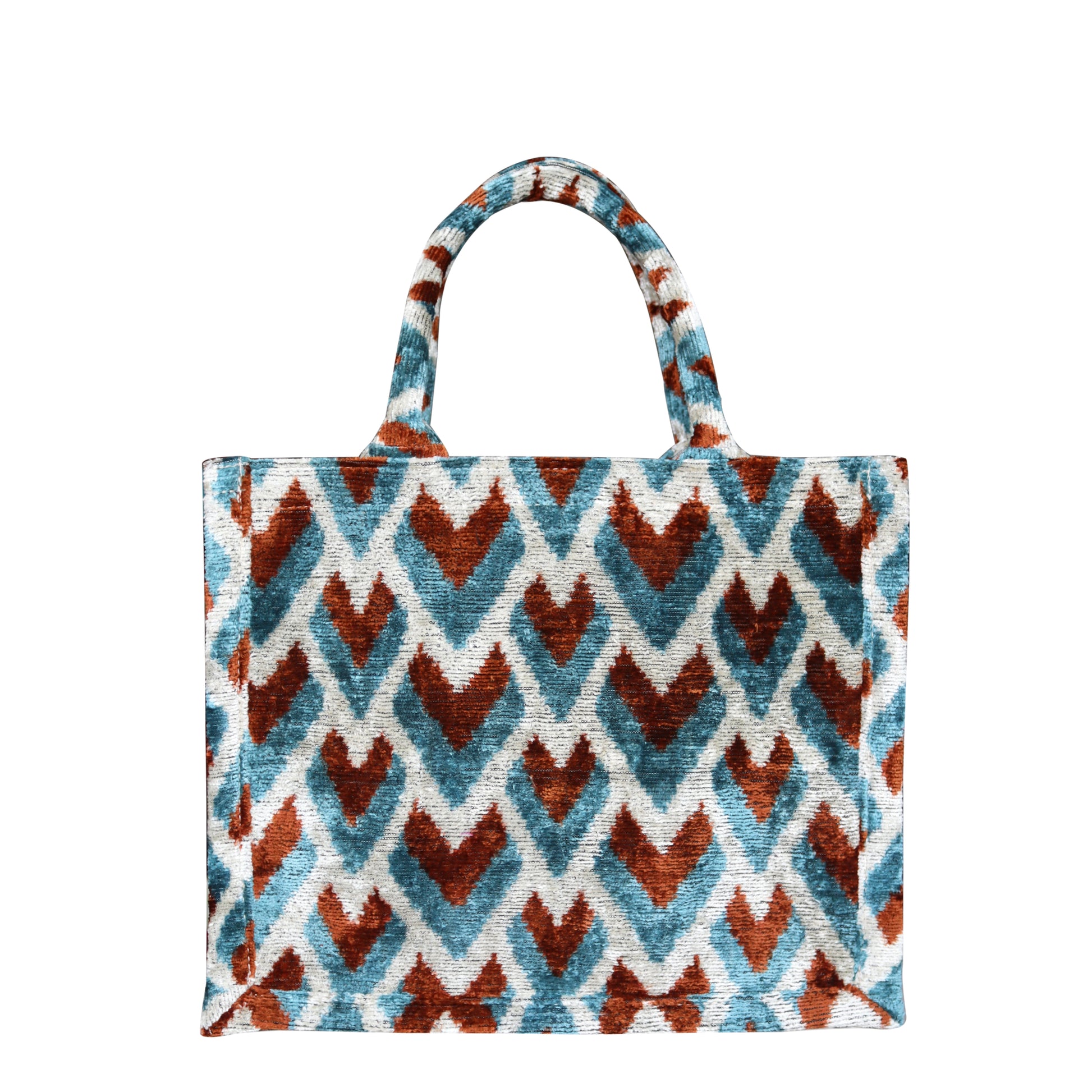Silk velvet ikat handmade medium tote bag.