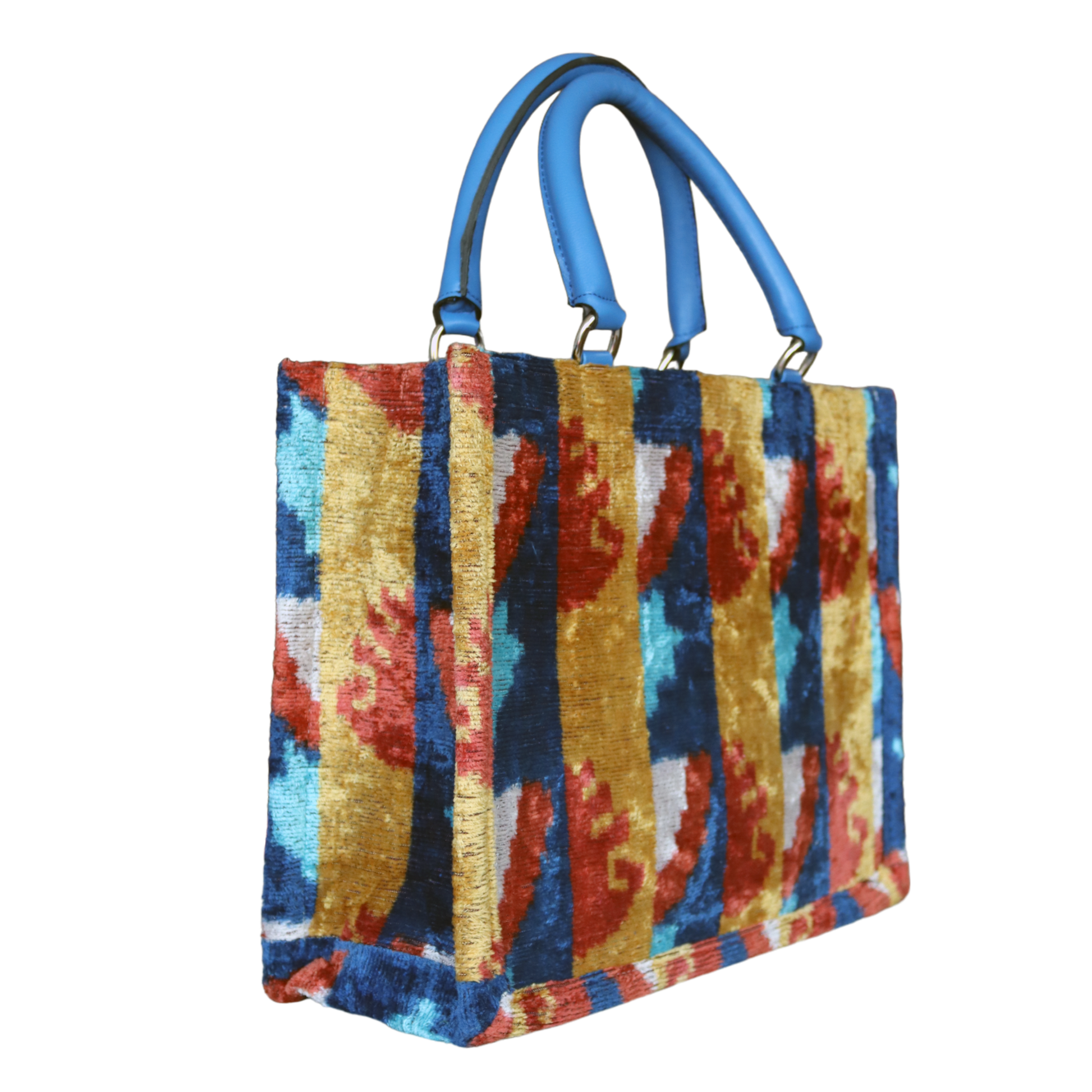Medium silk velvet ikat handmade tote bag.