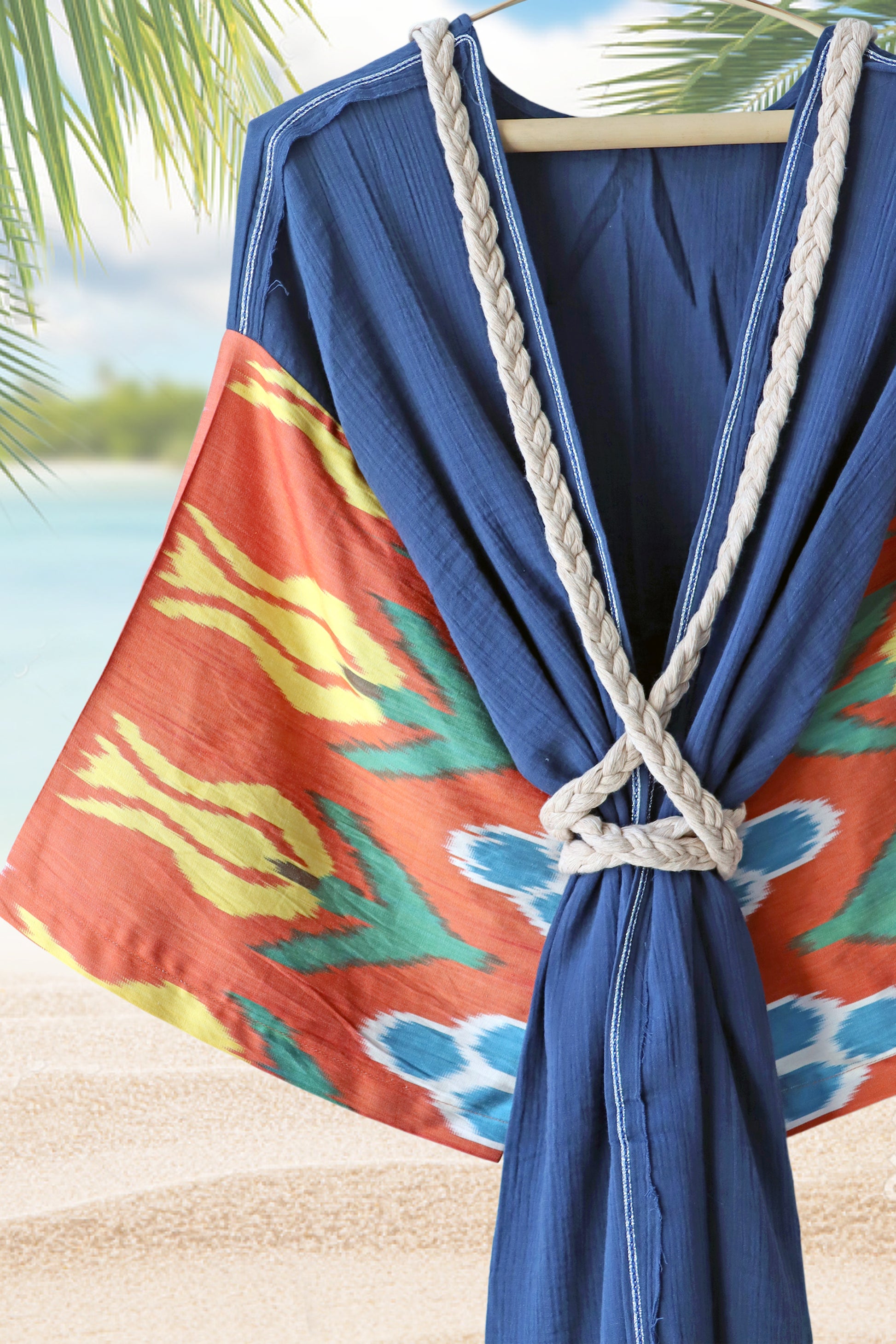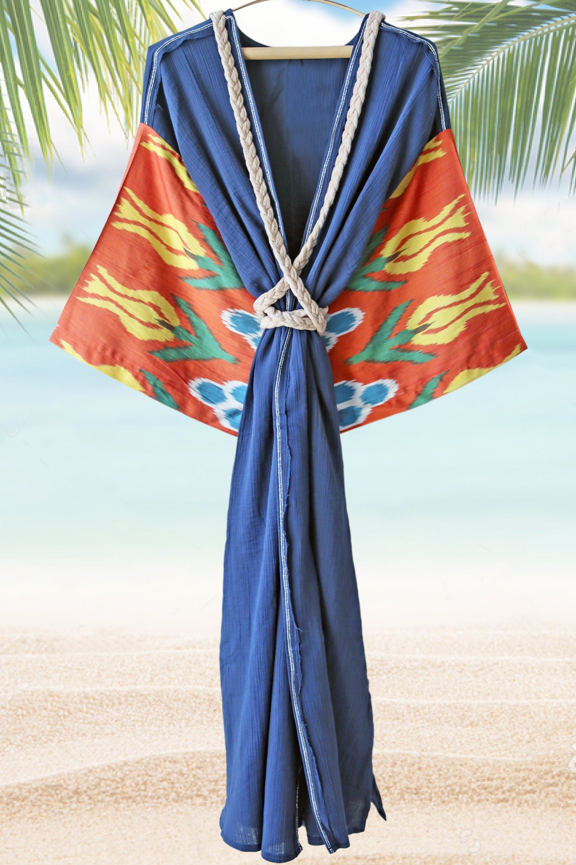 It’s made from handwoven silk ikat and organic soft müslin cotton robe/kimono.