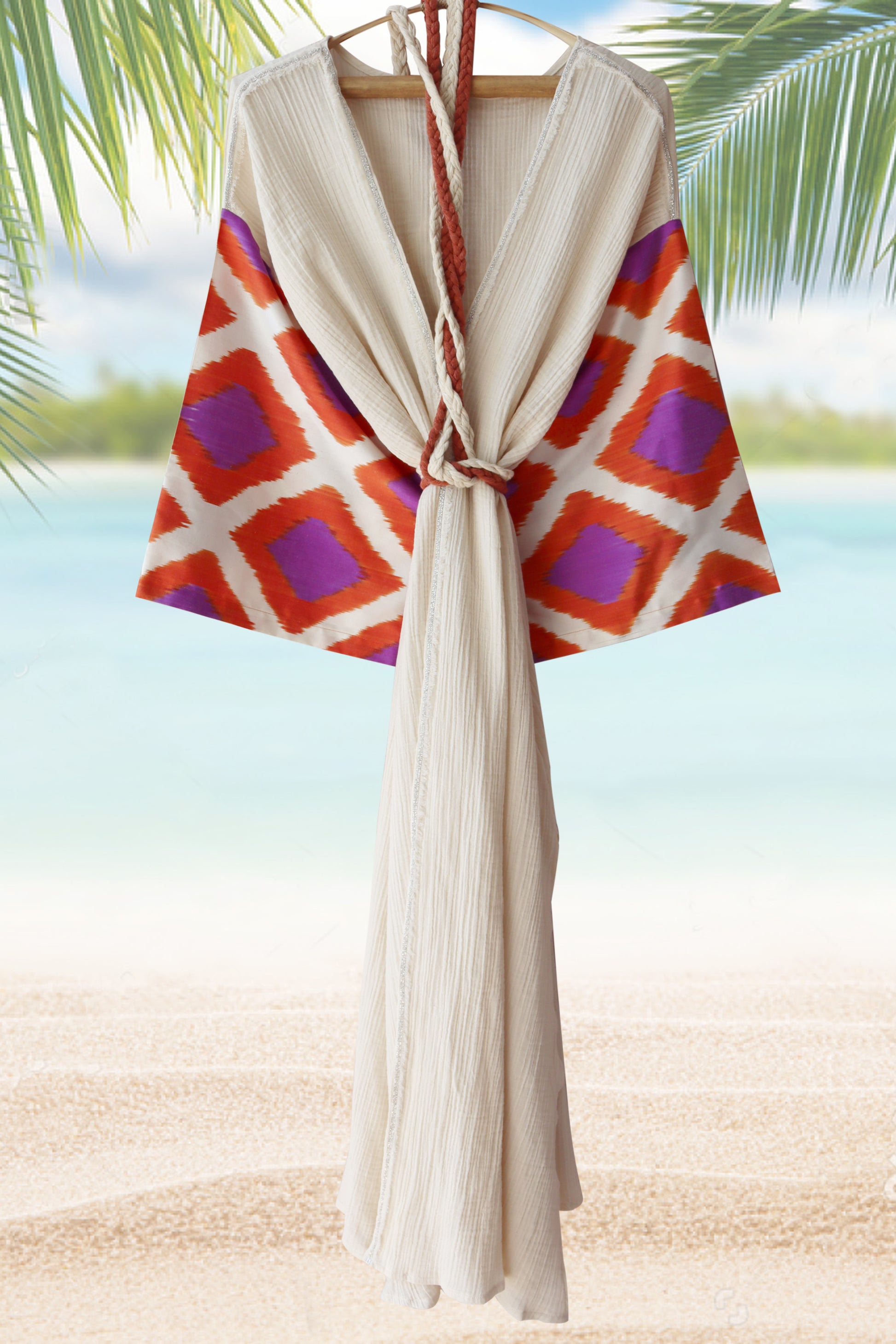 Silk Ikat Muslin Robe Orange and Purple